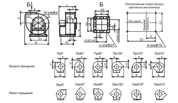 Пр 90 - направление вращения колеса и положение корпуса вентилятора.